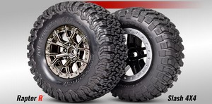Duże - czarne i chromowane koła, wiernie odwzorowują pełnowymiarowe obręcze modelu Raptor R. Licencjonowane repliki opon BFGoodrich All-Terrain T/A KO2, są fabrycznie przyklejone do kół, mają wypukłe litery i autentyczne bloki bieżnika, co zwiększa realizm. Ich ponadwymiarowa średnica 114mm nadaje modelowi Raptor R Ultimate imponujący wygląd i zapewnia doskonałą przyczepność na drodze i w terenie.