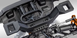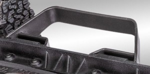 Przedni i tylny zderzak modelu Raptor R Ultimate wyglądają równie dobrze, jak działają. Oprócz zintegrowanego oświetlenia LED, zderzaki są wykonane w technologii Traxxas-Tough™, która amortyzuje uderzenia i nadaje samochodowi groźny wygląd.