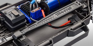 W modelu Raptor R Ultimate, bateria jest umieszczona głęboko w podwoziu, za wzmocnionymi ściankami bocznymi, co zapewnia jej maksymalną ochronę. Szybkozłączka o podwójnej wysokości pozwala na montaż szerokiej gamy baterii LiPo, od 2-ogniwowych o pojemności 7600mAh (2869X), po potężne 4-ogniwowe o pojemności 5000mAh i napięciu 14,8V (2889X). Wzmocniony zatrzask zapewnia solidne zamknięcie, dzięki czemu akumulatory są bezpieczne bez względu na to, jak szalona jest akcja.