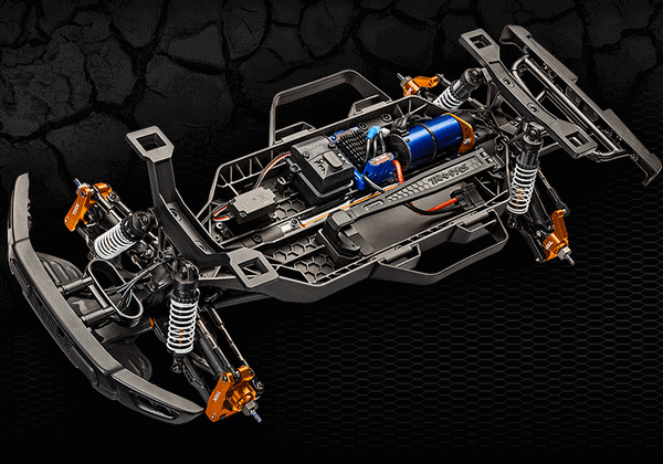 Raptor R 4X4 Ultimate wykorzystuje ekstremalny silnik bezszczotkowy Velineon 540XL, stosowany w monster trucku Maxx®, wspierany przez regulator prędkości VXL-4s z wbudowaną telemetrią i możliwością wyboru BEC 6,0 lub 7,4V. Dzięki zasilaniu 4S LiPo, Raptor R Ultimate łamie prawa fizyki, osiągając prędkość 96km/h i więcej - dzięki nieustępliwemu przyspieszeniu.