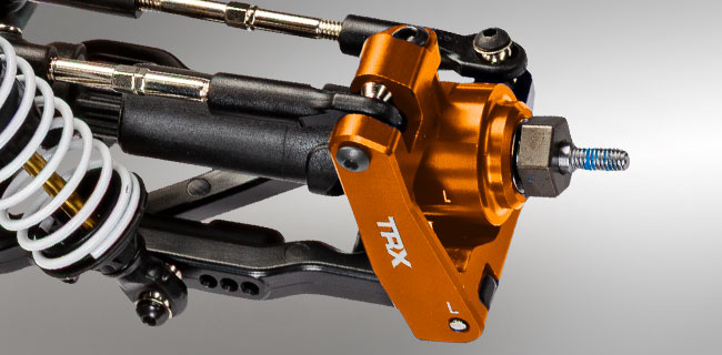 Blokady skrętu i blokady kierownicze Raptor R Ultimate łączą w sobie wytrzymałość aluminium 6061-T6 ze starannie zaprojektowaną geometrią układu kierowniczego i zawieszenia. Olśniewające, anodowane wykończenie nadaje im styl high-tech, a wygrawerowane laserowo logo podkreślają autentyczność części Traxxas.
