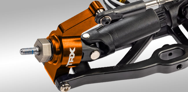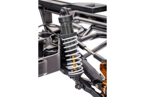 W modelu Raptor R Ultimate zastosowano te same śruby rzymskie ze stali o średnicy 4mm, które opracowano dla modelu Slash 4X4. Szerokie, płaskie sekcje ułatwiają regulację zbieżności i pochylenia kół za pomocą dołączonego klucza. Całkowicie zamknięte końcówki prętów są odporne na uderzenia i nie rozpadają się podczas intensywnej jazdy w terenie.