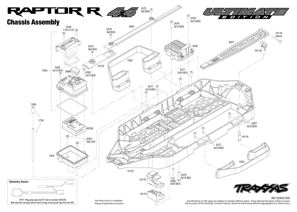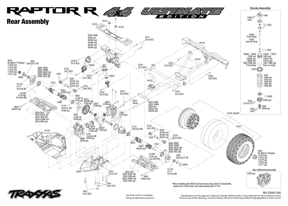 Raptor R Ultimate jest w pełni wyposażony w aluminiowe kółka i bloki kierownicze, wsporniki osi oraz amortyzatory GTR, które zapewniają mu ogromną siłę niezbędną do ekstremalnej jazdy. Wały napędowe Extreme HD są wzmocnione dodatkowym materiałem i mają wzmocnioną konstrukcję, dzięki czemu tworzą niemal niezniszczalny układ napędowy.