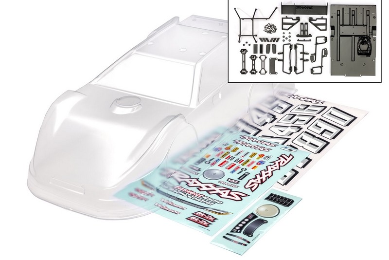 Przezroczysta karoseria Late Model jest dostarczana bez wykończenia dla maksymalnej personalizacji. Użyj dołączonych arkuszy kalkomanii, aby stworzyć własny projekt za pomocą farby Traxxas ProGraphix®. Traxxas sprawia, że łatwo i przyjemnie jest cieszyć się wyścigami Late Model na owalnym torze z podwoziem Slash Modified.