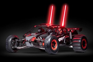 Traxxas dołożył wszelkich starań, aby dokładnie odwzorować pełnowymiarowy model Funco GTU Sand Car. Pro Scale Sand Car posiada pełne wnętrze z deską rozdzielczą i figurkami kierowców oraz replikami zdalnie sterowanych amortyzatorów 3,5″. Silnik to dzieło sztuki, składające się z 9 różnych części, w tym licencjonowanych filtrów powietrza R2C i doładowania Whipple.