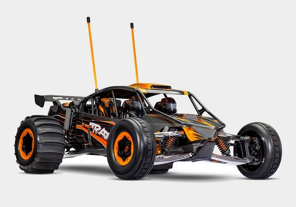 Traxxas dołożył wszelkich starań, aby dokładnie odwzorować pełnowymiarowy model Funco GTU Sand Car. Pro Scale Sand Car posiada pełne wnętrze z deską rozdzielczą i figurkami kierowców oraz replikami zdalnie sterowanych amortyzatorów 3,5″. Silnik to dzieło sztuki, składające się z 9 różnych części, w tym licencjonowanych filtrów powietrza R2C i doładowania Whipple.