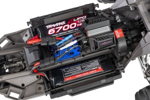 - Traxxas zaleca podwójne 4-ogniwowe akumulatory Power Cell LiPo o pojemności 6700mAh (#2890X) lub zestaw Dual 4s Completer Pack (#2997)