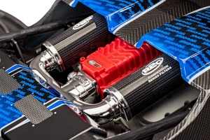 Tylny spojler zapewnia dodatkową stabilność podczas szybkich przejazdów i doskonale integruje się z nadwoziem typu clipless, zapewniając bardzo dokładny wygląd w skali. Skrzydło montuje się bezpośrednio do ramy rurowej, aby amortyzować nawet najtrudniejsze lądowania.