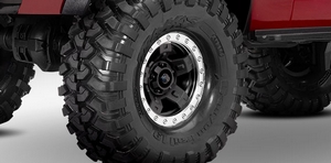 Koła TRX-4 Pathfinder 1,9″ są fabrycznie przyklejone i zamontowane do agresywnych opon Canyon Trail z mieszanką S1. Głębokie bloki bieżnika zapewniają maksymalną przyczepność na skałach. Dopasowane do warunków terenowych wkładki piankowe zapewniają realistyczną elastyczność ścianek bocznych, umożliwiając autentyczne pokonywanie wzniesień.