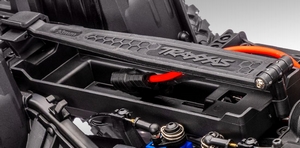 Główna komora na akumulatory modelu TRX-4 pomieści pełnowymiarowe akumulatory LiPo zapewniające dłuższy czas pracy lub mniejsze akumulatory w skali 1/16, które zmniejszają masę modelu. Odchylany pasek mocujący akumulator zapewnia szybki i bezpieczny montaż akumulatora bez ryzyka zgubienia kołków. Dodatkowa komora na akumulatory zamontowana z przodu pomieści mniejsze akumulatory w skali 1/16, które pozwalają rozłożyć ciężar bezpośrednio nad przednią osią, zapewniając maksymalną przyczepność podczas pokonywania wzniesień.