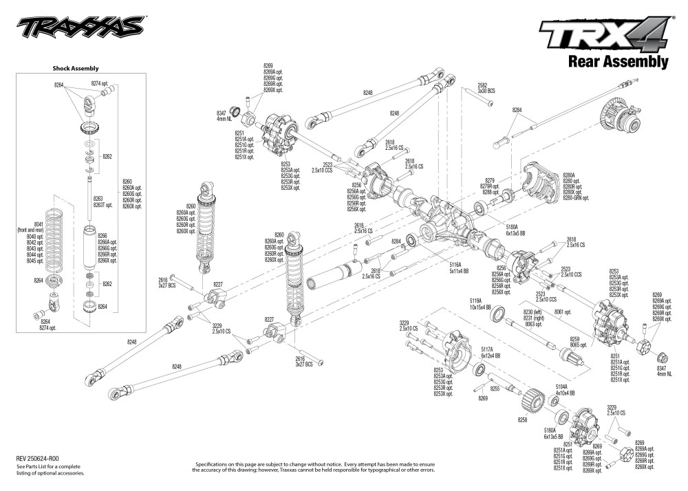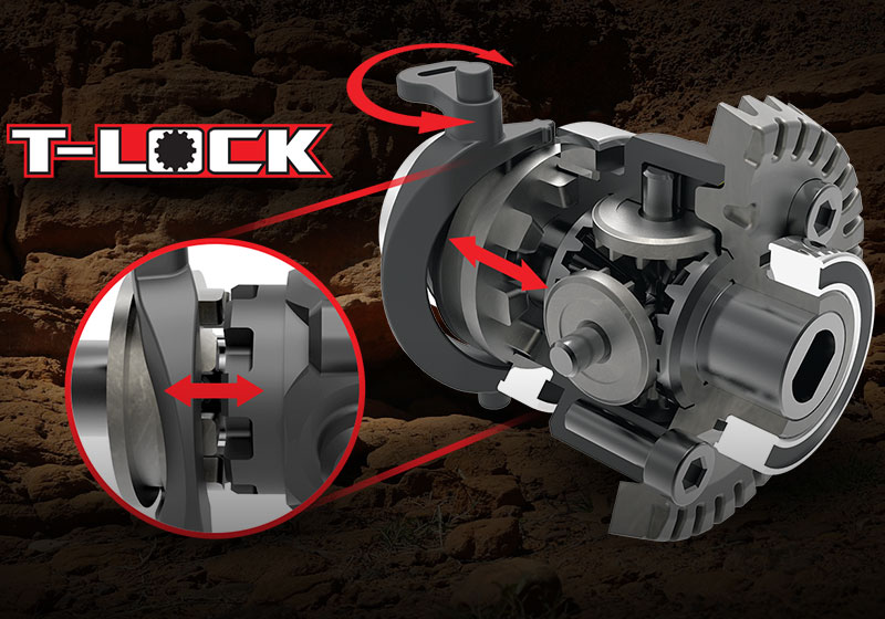 Traxxas umożliwia zdalne blokowanie i odblokowywanie przednich i tylnych mechanizmów różnicowych za pomocą nadajnika. Nowe mikrokable w osłonach sterują działaniem mechanizmów różnicowych, zapewniając wygląd zgodny ze skalą, bez ograniczania ruchomości zawieszenia.