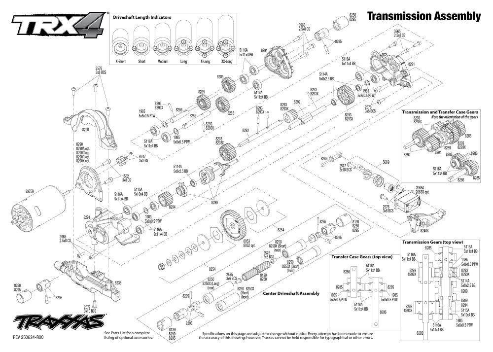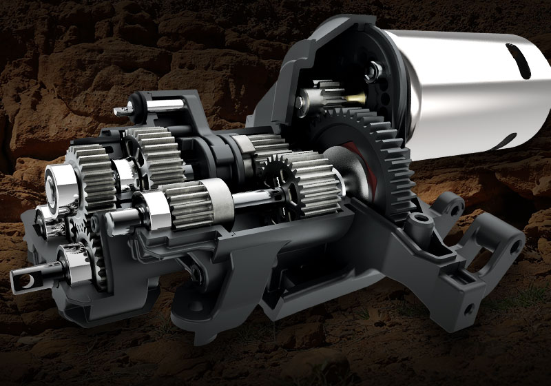TRX-4 wykorzystuje trzy wodoodporne mikroserwomechanizmy do uruchamiania przednich i tylnych mechanizmów różnicowych, a także wyboru wysokiego/niskiego zakresu przekładni. Mikrokable w osłonach eliminują skomplikowane połączenia, które w przeciwnym razie ograniczałyby ruchomość zawieszenia.
