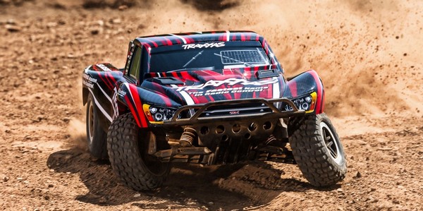 Slash z napędem na tylne koła został stworzony do pokonywania skoczni i pokonywania zakrętów na pełnym gazie. Starannie dostrojone niezależne zawieszenie na 4 koła jak najwierniej odwzorowuje rzeczywiste wrażenia z jazdy i prowadzenia. Skalowane opony zapewniają odpowiednią przyczepność i gęste, oślepiające chmury kurzu.