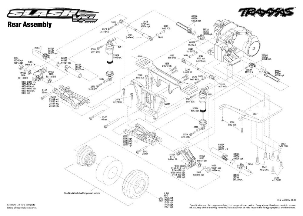 Fabrycznie montowane wsporniki osi Extreme Heavy Duty, bloki kółek i bloki kierownicy zostały wzmocnione dodatkowym materiałem, aby zapewnić Slashowi VXL najwyższą wytrzymałość i trwałość. Dzięki dodaniu wahaczy HD wykonanych z najtwardszego materiału kompozytowego Traxxas, jest to najmocniejsze zawieszenie kiedykolwiek oferowane w Slashu 2WD.