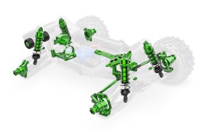 Maxx Ultimate otrzymał znaczące ulepszenia w kluczowych obszarach osiągów: zawieszeniu, podwoziu i układzie napędowym. Wytrzymałe podwozie i elementy zawieszenia wykonane z aluminium 6061-T6 zapewniają niesamowitą wytrzymałość i efektowny wygląd. Stalowe wały napędowe CV i stalowe koła zębate Mod-1 zapewniają maksymalną wytrzymałość i odporność na moment obrotowy.