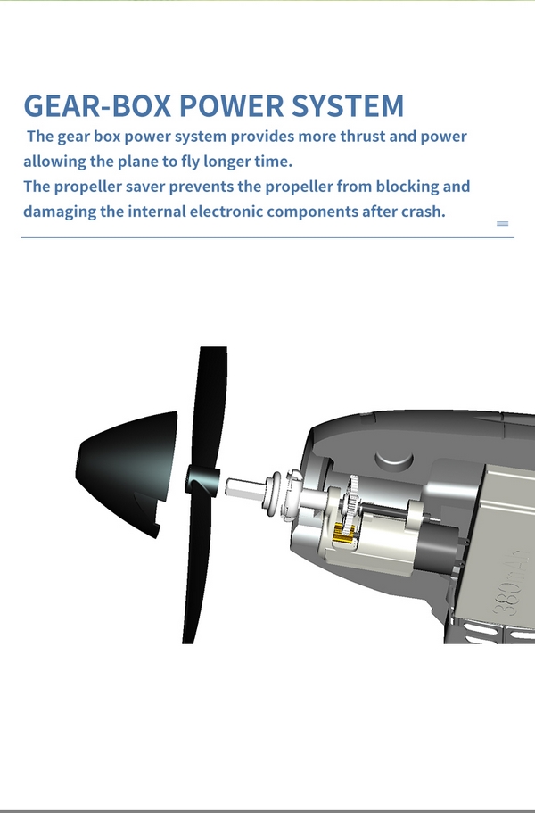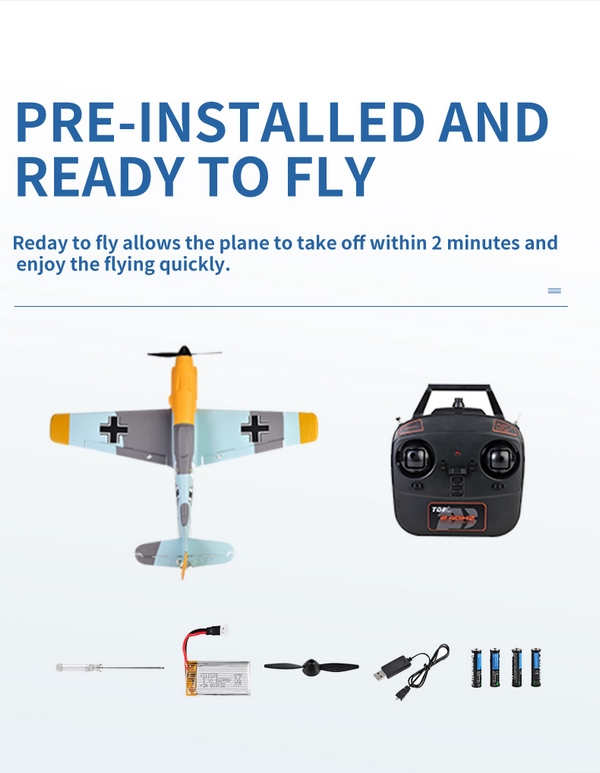 Mini BF-109 450 wyposażony jest w 6-cio osiowy żyroskop, który ułatwia naukę latania. System posiada trzy tryby: