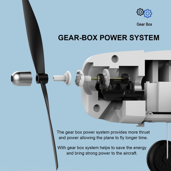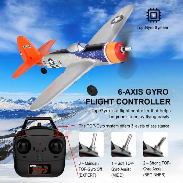 Mini P47 wyposażony jest w 6-cio osiowy żyroskop, który ułatwia naukę latania. System posiada trzy tryby: