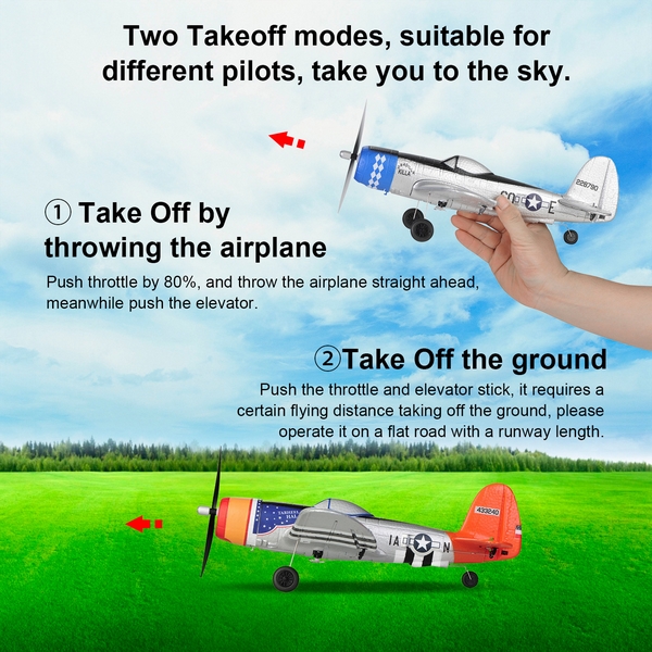 Mini P47 umożliwia dwie metody startu - z ręki oraz z pasa startowego.