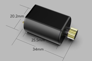 Masa silnika to 25.2g, wymiary: długość 25.5mm, szerokość 20.2mm, wał napędowy o średnicy 2mm.