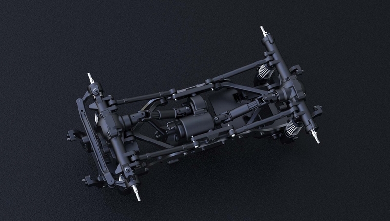 Odpowiednie podwozie i układ przeniesienia napędu do użytku w terenie. W modelu zastosowano wielowahaczowy układ zawieszenia i łącznik o dużym udźwigu. Wyposażony w oś o zmiennej prędkości, zapewnia nieprzerwaną moc wspinania się na wszystkie cztery koła, a jego doskonałe właściwości przegubowe mogą pokonywać różne przeszkody. Teleskopowy centralny wał napędowy o dużej nośności ma płynną konstrukcję, przenosząc moment obrotowy silnika na oś.