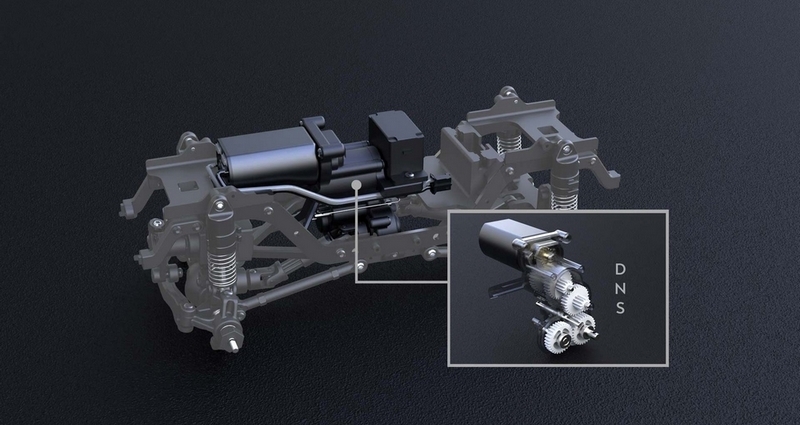 Struktura podwozia została zaprojektowana z myślą o możliwości rozbudowy. Tryby jazdy, takie jak surround i crab walking, można uzyskać poprzez ulepszenie przedniego i tylnego układu kierowniczego.