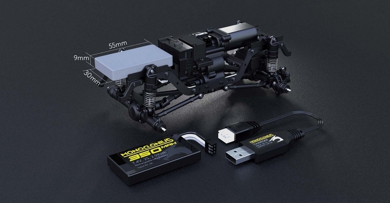 Akumulator LiPo o napięciu 7.4V i pojemności 350mAh zapewnia około 30 minut pracy dzięki wysokiej wydajności. Akumulator jest łatwy w instalacji. Komora akumulatora może obsługiwać baterie o maksymalnych wymiarach 55×30×9mm. Dołączona ładowarka USB zapewnia niezawodne ładowanie.