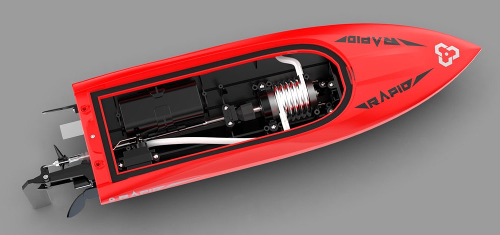 RAPID został zaprojektowany tak, aby był szybki, niezawodny i łatwy w prowadzeniu. Zainstalowany system chłodzenia wodnego silnika pomaga utrzymać łódź w chłodzie, zapewniając dłuższy czas pracy i całodzienną zabawę. Dzięki wodoszczelnej elektronice, zabawa nad jeziorem nie skończy się przedwcześnie z powodu mokrego sprzętu radiowego.