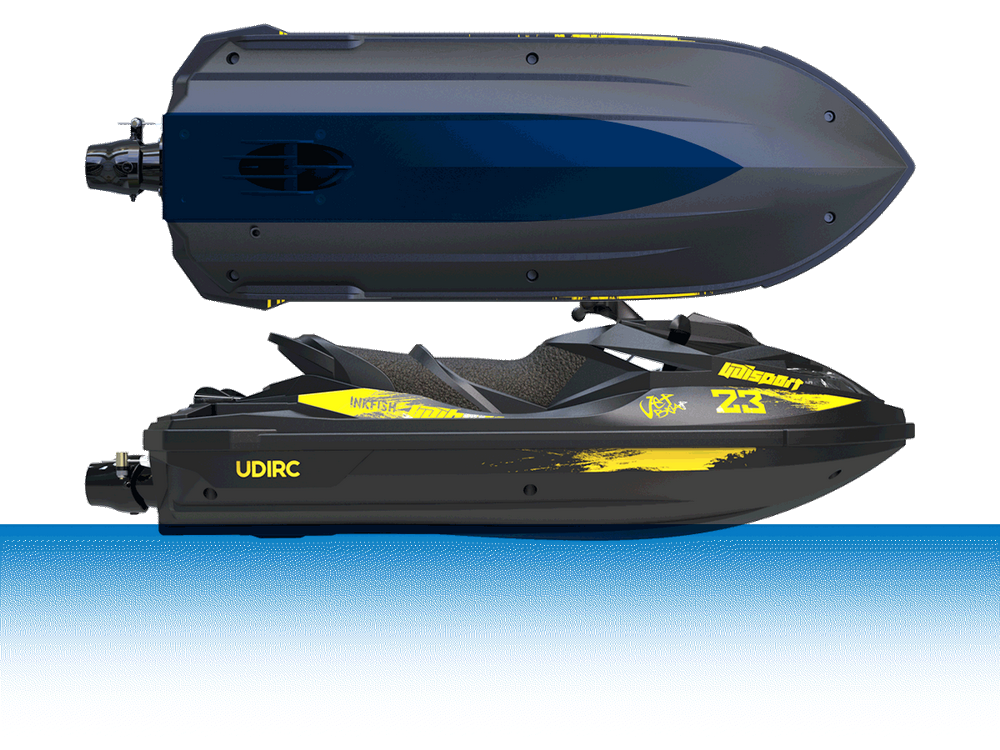 IKNKFISH posiada płytki kadłub w kształcie litery V o długości 362mm. Charakteryzuje się wysoką wytrzymałością symulowanego kadłuba ABS, dużą mocą pompy strumieniowej i doskonałą wydajnością pod wodą. Może swobodnie poruszać się po płytkich i skalistych obszarach, bez obawy o kolizję i zaplątanie się w różne podwodne przeszkody.