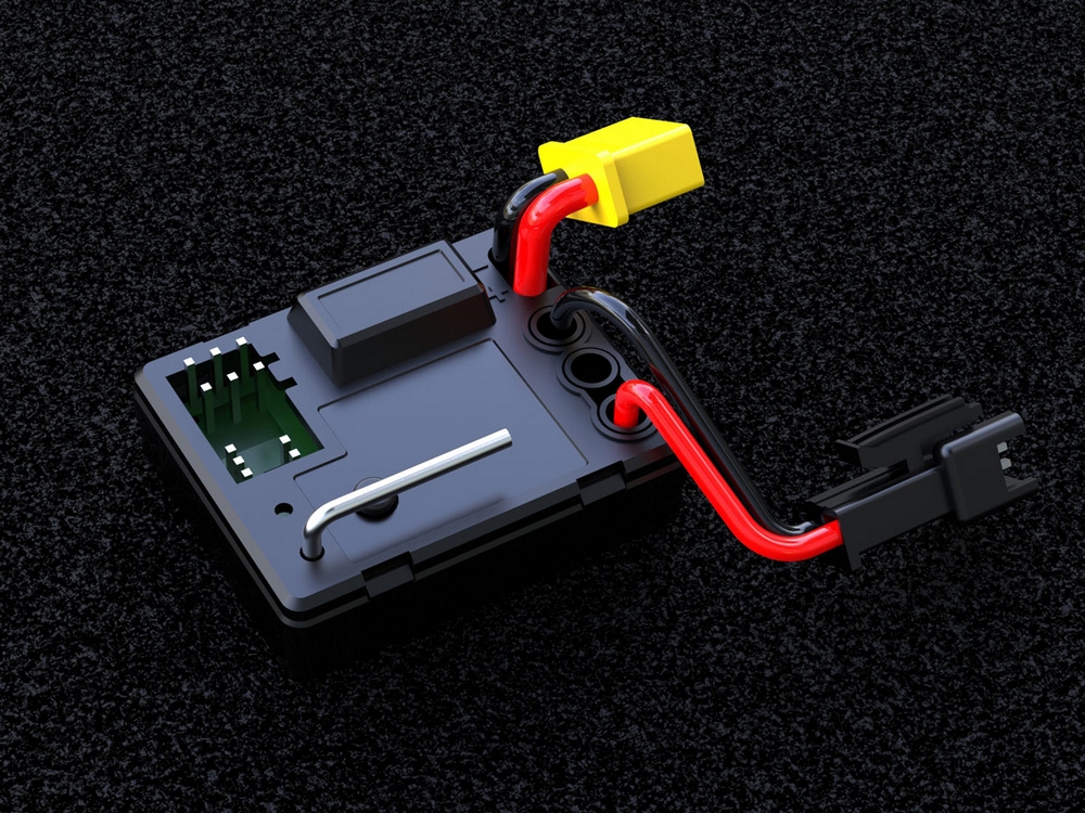 Moduł sterujący wbudowany jest w wodoszelną skrzynkę. Obsługuje funkcję odbiorczą sygnału R/C oraz funkcję elektronicznej regulacji prędkości.