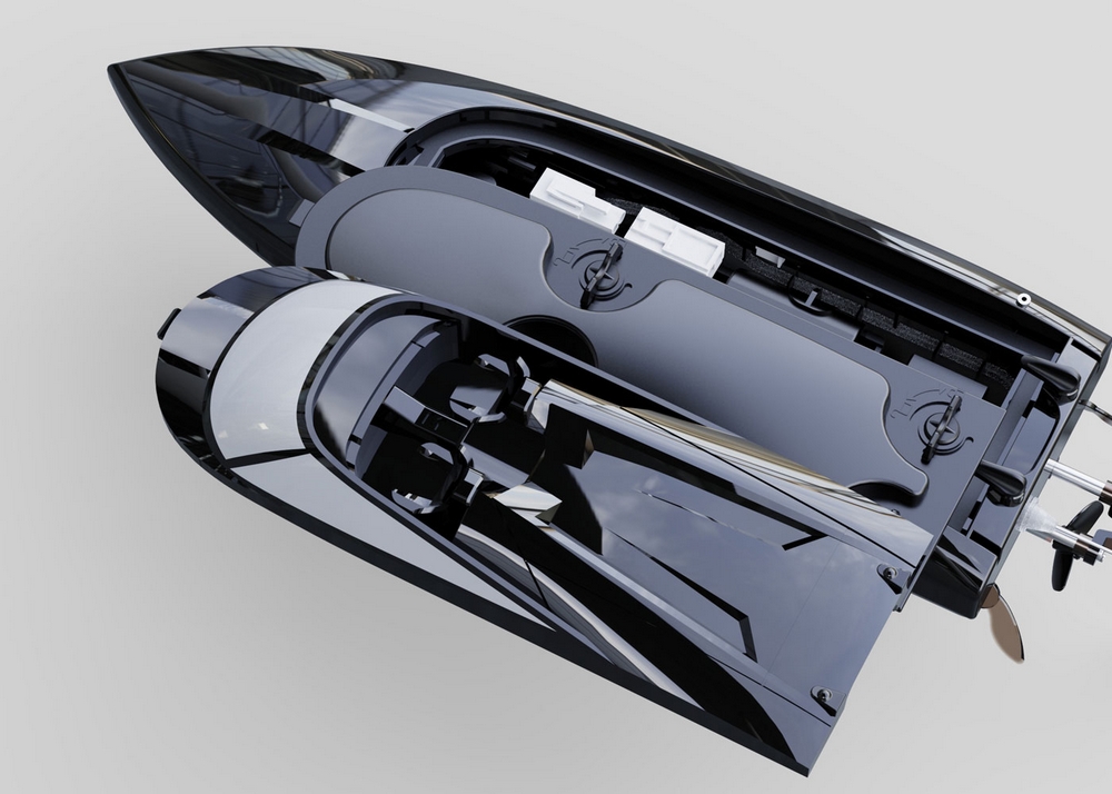 Warstwowy kadłub ABS jest lekki i wytrzymały, zdolny do wytrzymania większego nacisku bez deformacji. Kadłub jest wyposażony w ster nawigacyjny, śrubę napędową i ster strumieniowy. Model jest wyposażony w gumową nasadkę na dziób łodzi w celu ochrony przy cumowaniu lub zderzeniu się z przeszkodą jako ochrona przed uszkodzeniem. Kadłub łodzi został zaprojektowany tak, aby po wywróceniu się, mógł wrócić na żądanie do prawidłowej pozycji.