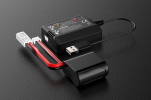 Zestaw zawiera ładowarkę USB i akumulator Li-Ion 7.4V/1100mAh. To wszystko wystarczy do obsługi bez konieczności zakupu dodatkowego osprzętu.